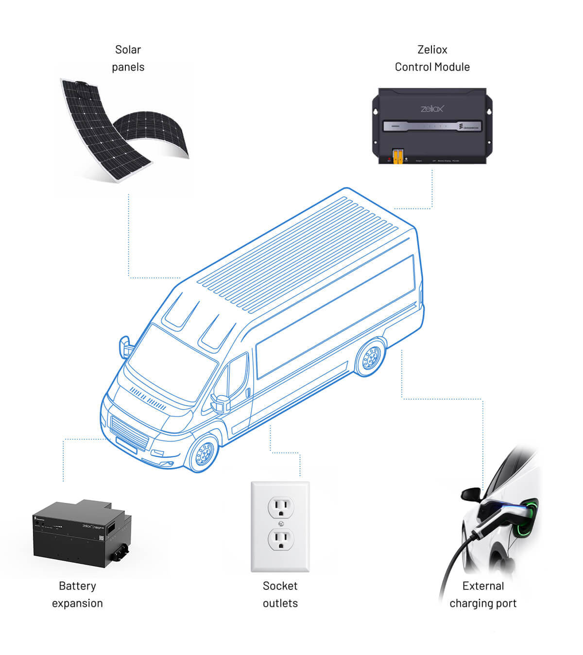 Eberspächer Zeliox 4.000 ühendab liitiumaku, inverteri, laadija ja päikesepaneelide kontrolleri ühte kompaktsesse sõidukivalmisse seadmesse.